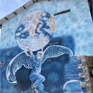 Butterfly wall at the heart of San Pedro La Laguna. When you walk up from the public boat, take a right at the first street and you will see it on your right (unless they change it)