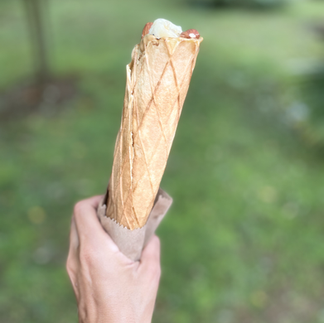 Top Row: From left to right - Elote / Corn in a Cup in Town Center, Marquesita (Pancake rolled up with Banana, Peanut Butter, Almonds), and Waffle at Herbalife Nutrition Club.